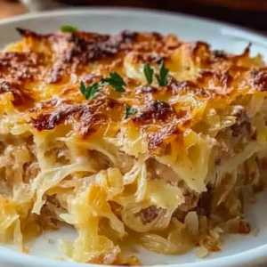 Sauerkraut casserole is a hearty dish made with layers of beef, sauerkraut, noodles, and cheese. It’s warm comfort food perfect for family gatherings.